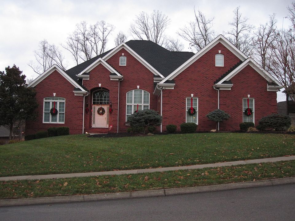 Custom built, all brick, Frank Betz design,open floor plan, 3 living levels, main level split bedrooms, downstairs mother-in-law suite with garage, upper level bedroom & bath and lounge area with wet bar