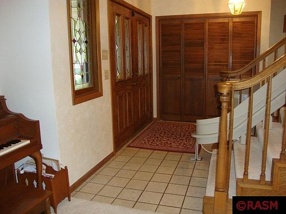 Custom built, one owner home on exceptionally large. (.47A) wooded lot. Stucco and brick exterior, and 3 stall garage. 4+ bedroom, 3-1/2 baths. Main floor: Entry with tiled floor and open stairs; living room with vaulted ceiling opens to formal dining room; kitchen with ample cabinets, desk, pantry, solid oak flooring and informal dining. Step down family room with Kasota stone fireplace and more custom built-ins; French doors lead to 4 season, octagonal sun room with vaulted ceiling; back entry with main floor laundry and convenient half bath. Upstairs: 4 bedroom, 2 baths. Master bedroom with private bath; additional full bath with air jet tub, separate shower and double sinks. Basement: Family room with kitchenette, free standing wood burner, solarium window, game room area with patio doors that walk out to patio; 3/4 bath; guest room with closet; large storage room. Additional features include hot water heat, central air, in-ground sprinkler and much more.