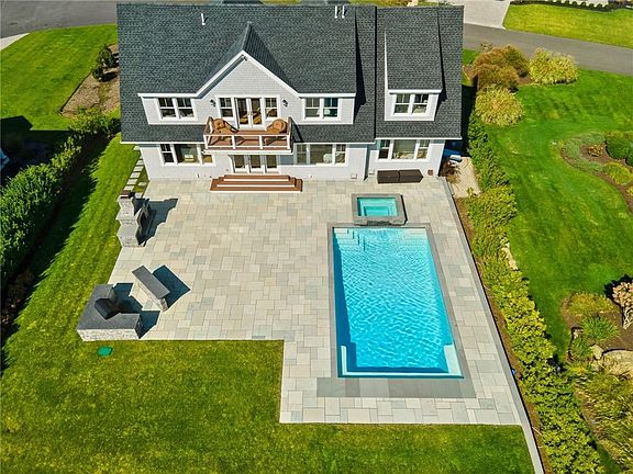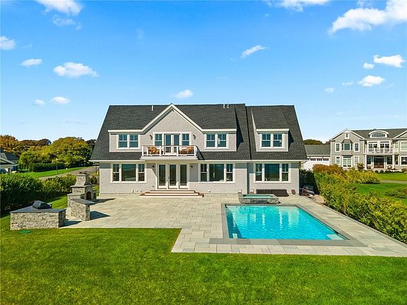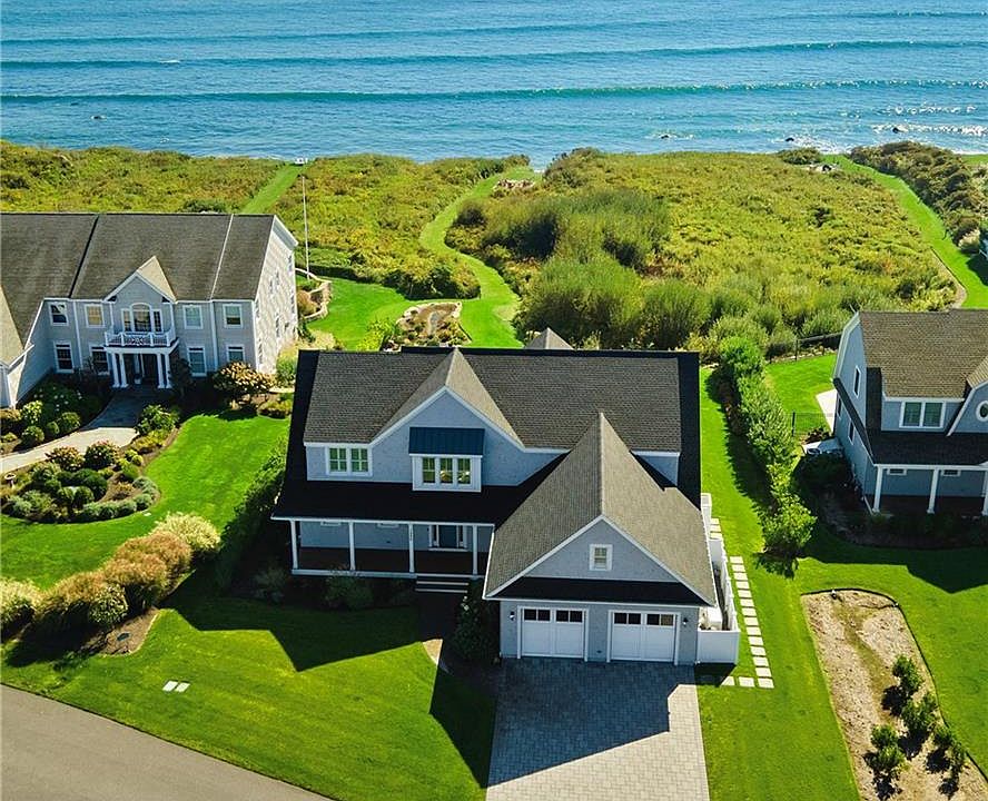 Pristine and welcoming oceanfront home in a unique and desirable community within walking distance of a popular RI beach. This essentially new home has 4 spacious bedrooms, 4 1/2 baths, and breathtaking views of the ocean from practically every room. The wall of windows, door to patio, and open-concept kitchen/dining/living area create the feeling of outdoor living every day. Enjoy coffee in bed while drinking in the ocean views and taking pleasure in the warmth of your gas fireplace on blustery days in your first-floor master bedroom. Two additional gas fireplaces grace the living room and upstairs office/family room. Upstairs has 3 additional bedrooms, one of them is a master with an ensuite, walk-in closet, and bonus room. An upstairs family room/office is adorned with French doors that open to a balcony with endless views of the ocean. The basement is finished and ready for entertaining with plenty of room for the kids to enjoy the game and TV room with an additional full bath. Two utility rooms provide plenty of extra storage. Outside the extended patio, beautiful stone fireplace, and barbecue/bar will extend your days in warmer weather, or stroll down the lighted grass path to a tranquil waterside seating area. The outdoor shower helps when rinsing off after the beach before jumping into the heated, salt-water pool or relaxing in the built-in hot tub. No summer rentals allowed in the neighborhood or flood Insurance. Must see rare offering on the waterfront. Call today!