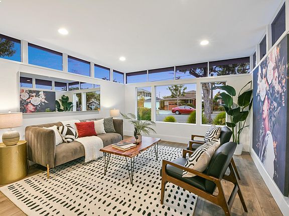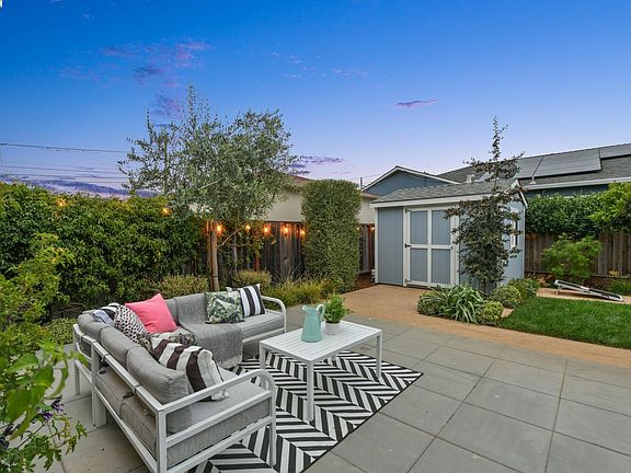 Enjoy the best of Alameda’s East End in this one-of-a-kind 4BD/1BA Mid-century home on a charming street, just blocks from shoreline trails, parks, boating, and tennis courts. Windows galore stream sunlight into the 1544 sqft home’s spacious living room with a picture window looking onto the front garden. Recessed lighting and gorgeous wood floors span into the spacious dining room for seamless flow and easy entertaining. The renovated kitchen boasts stone counters, ample storage, a laundry area, and a sunny window with a backyard view. Backyard access from the kitchen allows for excellent indoor/outdoor living in the thoughtfully designed backyard. Surrounded by lush vines, mature trees, and shrubs, you can dine al fresco on the large patio, or play bocce and do cartwheels on the level lawn. The backyard also offers a shed with bright windows ready for an artist’s studio, storage, or playroom. Back inside, the first floor is complete with storage, a renovated full bathroom, and two bedrooms, with two more bedrooms on the second floor. All bedrooms have roomy closets and bright windows, and the home enjoys air conditioning for those warmer summer nights.. Down the road, find top schools, Krusi Park, Encinal Market for quick groceries, and the Transbay Bus and Ferry.