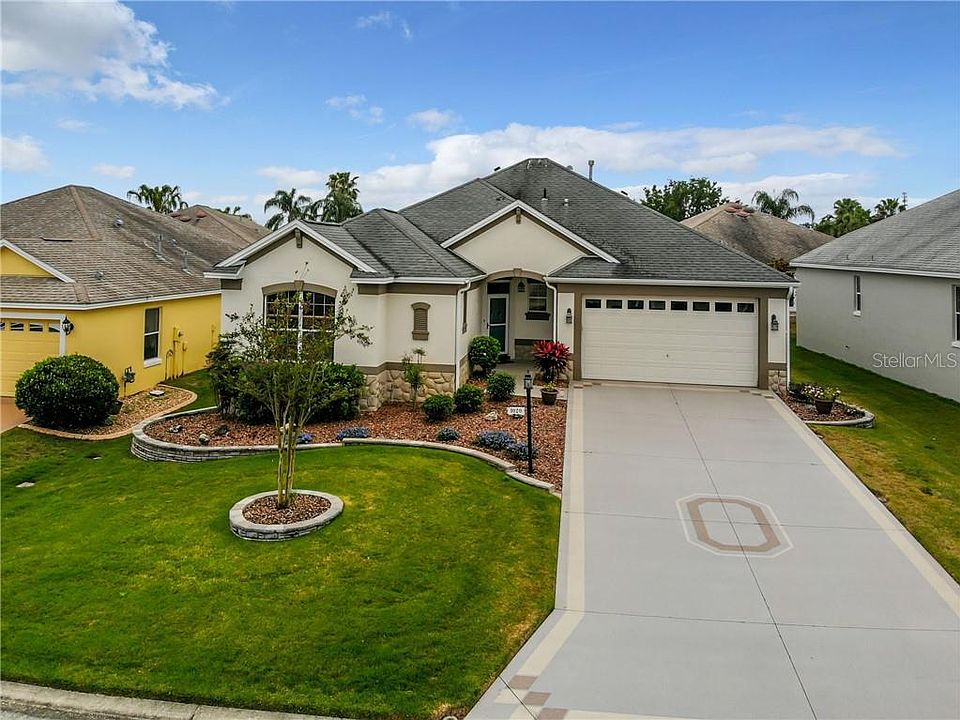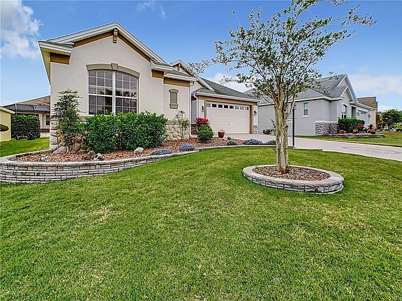 Stunning Camden 3/2 Designer home in the Village of Largo and on the desired Pendleton circle where all the surrounding homes are concrete block and stucco. This 3 bedroom 2 bath block and stucco home has great features including separate living and dining rooms with an open kitchen, ceiling fans throughout, and inside laundry. Enjoy seamless flowing wood laminate flooring throughout with ceramic tile in the wet areas. There is no carpet in this home. Master bedroom has a large walk in closet, ensuite bath with dual sinks, shower. Kitchen has wood cabinets, stainless steel appliances, Gas Range and breakfast bar. Lanai is enclosed with large windows to enjoy year round. You'll be close to the Sabal Chase Pool and Bacall Recreation center for activities and Lake Sumter Landing for dining, shopping and entertainment. Watch our video and prepare to fall head over heels in love! This is the home you've been looking for all along!