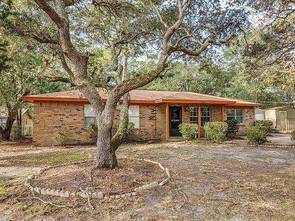 Great first time home nestled beneath majestic live oak trees! Or perfect home for someone looking to downsize! Cute all brick home on a large lot that backs up to the base. Awesome location just minutes from Hurlburt Field. Stainless appliances, granite tile counters, white cabinets and tile floors. Bright open living area with wood flooring. Master bath has been updated and has a tile shower. Other two bedrooms share the hall bath. Large back patio which would be prefect for family BBQ's. Huge live oak trees would be the perfect location for a treehouse and swings - just bring your imagination! Two storage buildings and the room to potentially build a garage or workshop. One owner home. Roof is approx. 10 years old and HVAC is approx. 8 years old.