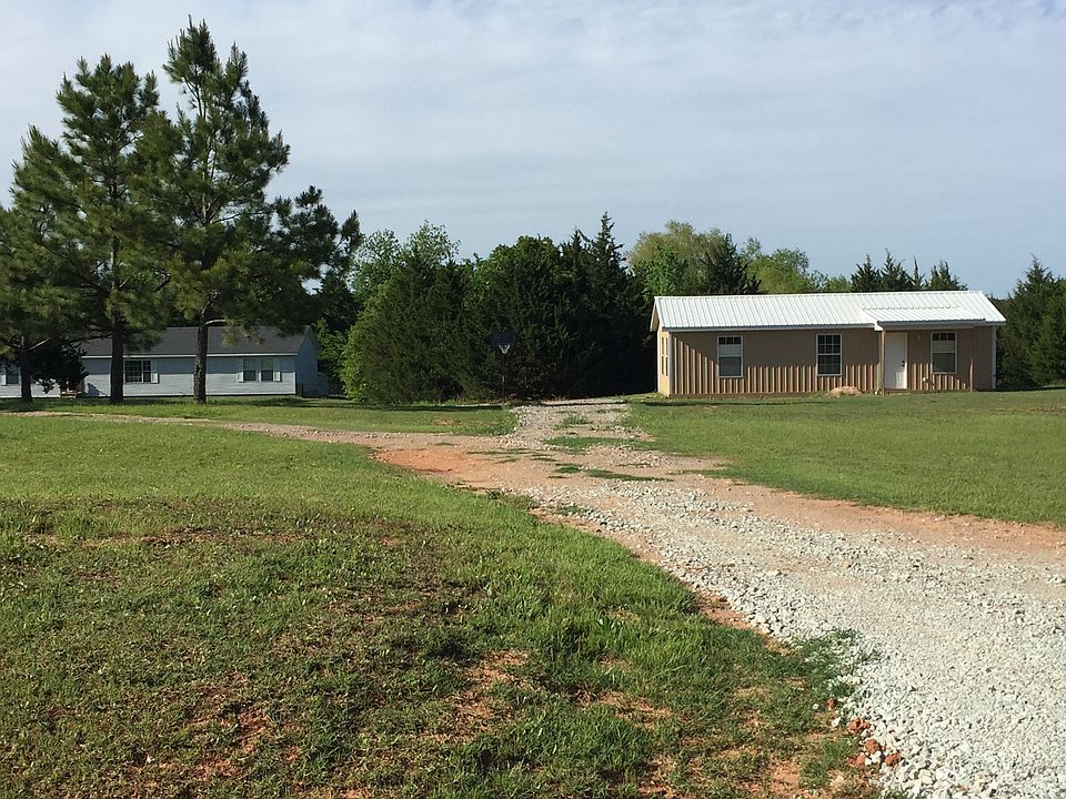 10 acres of land with well an septic. Has 1800 sq ft house three bedroom, two bathroom. Everything is brand new carpet, tile, cabinets, granite counter tops, doors, etc. Needs trim! In the process of painting the living room! Plus has a 800 sq ft guest house on land, the house isn't finished! Brand new fenced back yard less then a month old. 2 car carport a year old. A few pics in comments. I can send more pics just PM me.