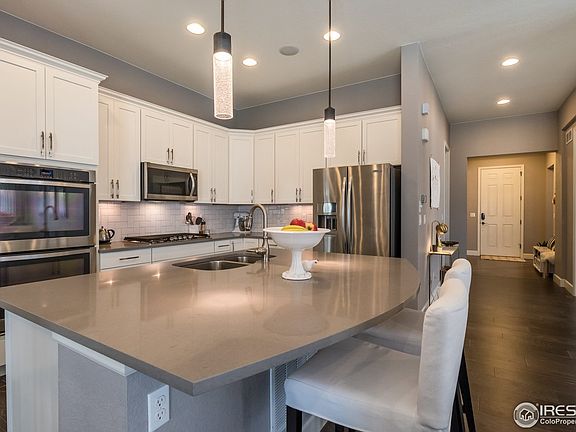 Come home to luxury in the vibrant community of West Grange in SW Longmont! Gorgeous 4 bdrm ranch for selective buyers looking to upgrade or downsize in style with many builder upgrades unique to this magnificent model home; fully finished lower w/secluded guest bdrm en-suite! Just out the front door is amazing access to Boulder's world-class outdoor recreation and active lifestyles! Walk/hike/bike to BoCo Open space trails and highly rated Blue Mountain Elementary & Altona Middle School. Spacious Open floor plan w/gourmet kitchen, center island bar/eating area. Great room with vaulted ceiling, luxury master suite with his & her showers. Beautifully appointed, Fully finished bsmnt w/2bd full bath en-suites, elegant wet bar/wine fridge, wine room & media/game area. Easy commute to Boulder, Niwot Open Space hike/bike trails & shopping. Energy efficient HERS rated, Builder's Model home with fabulous finishes & upgrades throughout!