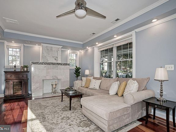 Amazing 4 bedroom/1 den/4.5 bath Colonial home in Brookland on a large corner lot with off-street parking! Large front porch is a great place to relax or chat with neighbors. Home boasts gorgeous wood floors throughout, dual HVAC and high-end touches including crown molding and recessed lighting. Sun-filled open floor plan with combo living/dining. Beautiful and cozy fire place in living room. Chefs kitchen features white cabinets, farmhouse sink, marble countertops, additional vegetable sink and Maytag stainless steel appliances. The open floor plan makes for easy entertaining. Upper level hosts three spacious bedrooms including primary suite. Finished basement provides loads of additional living space with family/rec room and office/den. Separate entrance provides flexibility for in-law suite or AirBnB. Large rear deck looking out to fenced-in yard and new stone patio. Custom-built shed with windows and electricity- great for garden tools or studio. Gated driveway allows parking for four cars! Location can't be beat with close proximity to red line Rhode Island Metro station, many neighborhood dining favorites such as Menomale and Primrose, and grocery store down the street. The Franciscan Monastery offers a quiet sanctuary from the city with beautiful gardens and nearby Noyes Recreation Center has a playground, walking path and community gardens. This home as it all!