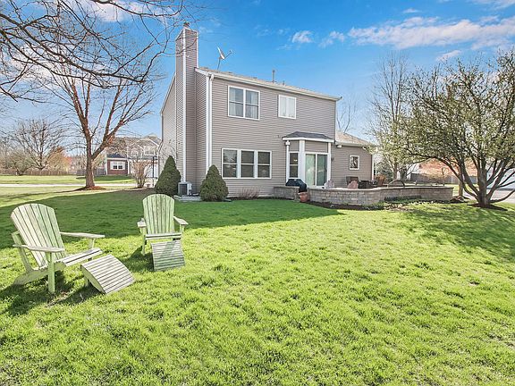 Perfect 2 story home in the desirable neighborhood of Painted Lakes and Lakes Community High School. Corner lot that overlooks scenic pond area. *NEW ROOF* NEW SIDING* Gleaming hardwood floors throughout the first floor. Formal living room and combined dining room gives tons of space for entertaining! Make your way into the beautiful kitchen! Light and bright with canned lighting, fresh Quartz countertops and neutral backsplash. All stainless steel appliances and pantry closet. Sun filled eating area leads you out to the professional brick paver patio! Quality Anderson sliding glass door makes enjoying the summer evenings a breeze! Main floor is complete with family room, fireplace, laundry room and 1/2 bath. Upstairs features new carpet, master bedroom and bath. Vaulted ceilings, title floors, double vanity, WIC and jetted tub. 2 additional bedrooms and full bath up. Finished basement offers tons of storage area and doubles your living space! 4th bedroom down.