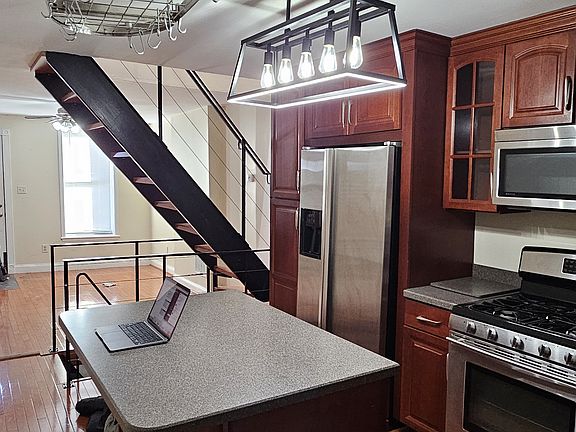 Come check out this awesome 2 bedroom house in Canton! In walking distance to both bars/restaurants in O'Donnell Square, shops at Canton Crossing, Canton Waterfront, and Merritt Health Club. Close to 95 and 895 access. Lots of natural light, end of group townhouse with hardwood floors, central air, and washer and dryer in basement. Updated kitchen with gas range, garbage disposal, and island with counter space for entertaining. LARGE ROOFTOP deck with WATER-VIEW perfect for hosting. Additional decks on lower levels. Large patio space with gated privacy space in rear. Small dogs ok with a pet deposit. Security deposit and 1st month's rent required at move-in. Available 2/15