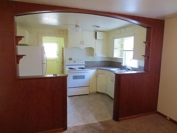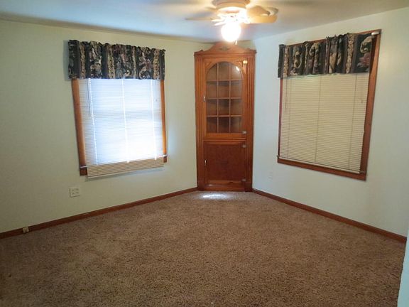Home with detached garage, vinyl siding and updated windows. Formal dining room, covered front porch, central heat and air. Walk in shower in utility room. Cute property would make a great investment and home.