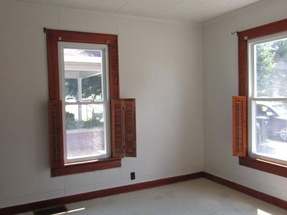 Check this one out. It has 2 bedrooms, 1 bath, large living room that could possibly be open with dining area at one end. Windows appear to be newer. Full basement that has been partially finished. It has a covered front porch, detached 1 car garage, storage shed and back yard that would be possibly large enough for a garden or fence for your animals.