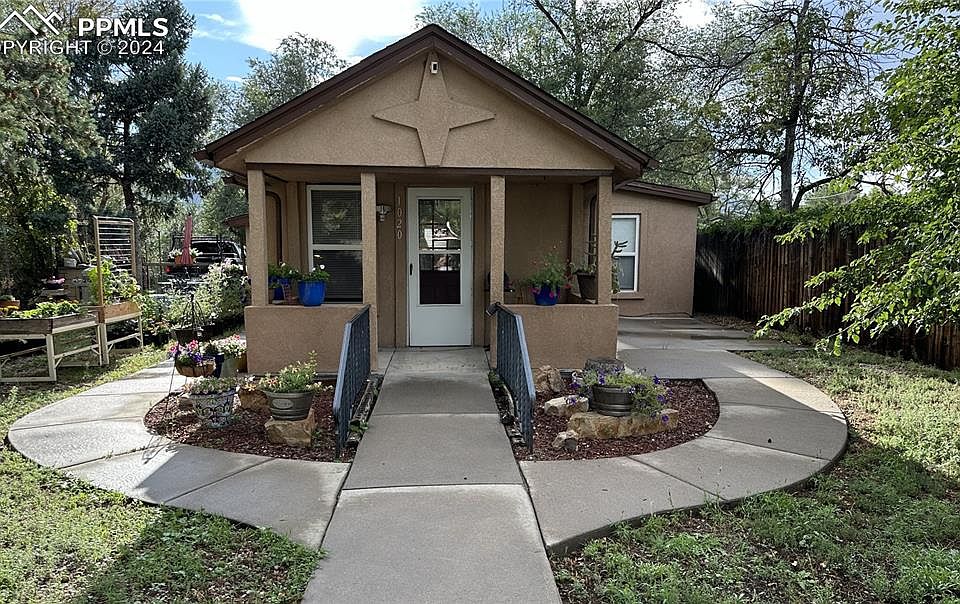 This beautiful 1 bedroom, 1 full bath, 788 sqft home in the South End neighborhood has raised garden beds in the fenced front yard that contribute to its charming cottage curb appeal. With pillars at the covered front porch, stucco exterior, and pitched roofline it feels like home! Warm wood floors invite through the front entry and stretch through the open living spaces and brings turn of the century charm and character from the moment you walk in. A spacious front room with large windows allows in natural light to a front living room, which enhances the open feeling that stretches throughout the home. Beamed walkways to the formal dining room enhance functionality, and the open floorplan creates an inviting atmosphere throughout. Large tile-floor kitchen provides plenty of workspace for meal prep, with natural wood cabinets, wrap around counterspace and updated appliances. Full bath provides practicality and convenience with ample floor space for everyday use, and flex space off the kitchen can be used as an office or mudroom, with laundry in the basement. Off the dining area, is convenient entry to the private main floor bedroom with closet. Within walking distance to downtown Colorado Springs, you can enjoy easy access to all the South End offers. Weidner Field to the north, Old Colorado City to the Northwest, Prospect Lake to the East, and Ivywild/Cheyenne Mountain to the South, it's easy to immediately enjoy all of Colorado Springs. Nestled on over a quarter-acre lot and the end of a quiet cul-de-sac, mature trees shade a concrete patio for enjoying the outdoors, plus, the 1-car detached garage with gated alley access provides plenty of on-property RV/truck/toy storage, for business or private use. For the forward thinker... it's Zoned R2, so you can build a second dwelling on site! Don’t miss this gem with all it's loveliness!