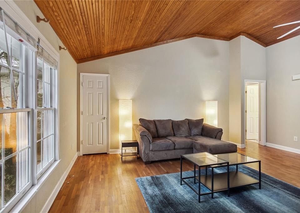 Tucked off the main road in a cozy, tree-lined community in the City of Decatur, this spacious 2 bedroom, 2 bath, second-level condo couldn't be more convenient! Situated just a mile and a half from both Emory Hospital/Decatur Square and Emory University on the Emory Bus Line, this home features beautiful 10ft+ craftsman ceilings in the living room. From the living room, it's an open view to the bright, white kitchen where you'll find plenty of space to cook & lots of extra cabinet storage under the peninsula. The deck off the rear faces a serene, private, wooded area. The true hardwood floors are in great shape and run seamlessly throughout the living room, kitchen, and both bedrooms. The primary bedroom has windows on two sides for lots of natural light, two closets, an en-suite bathroom with ceramic tile. The second bathroom, with shower/tub combo sits next to the in-unit hall laundry. There is plenty of parking for guests and you can store your lesser-used belongings in the locked, private storage unit in the basement. This unit is move-in ready and ready for a new owner to call it home!