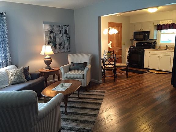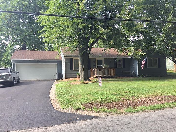 Nice and clean freshly painted throughout 3 bdr, 1 bth home. With NEW hard flooring. New hot water heater. Nearly half acre yard with covered patio and large shed. 2 car attached garage with door opener. Kitchen appliance 3 1/2 yrs old --optional. Washing machine 5 yrs old and dryer 6 mos old, both optional also. Long Creek Water. Mt. Zion Schools. And a great view of Spitler Woods State Park. And driveway newly black topped this summer 2016.