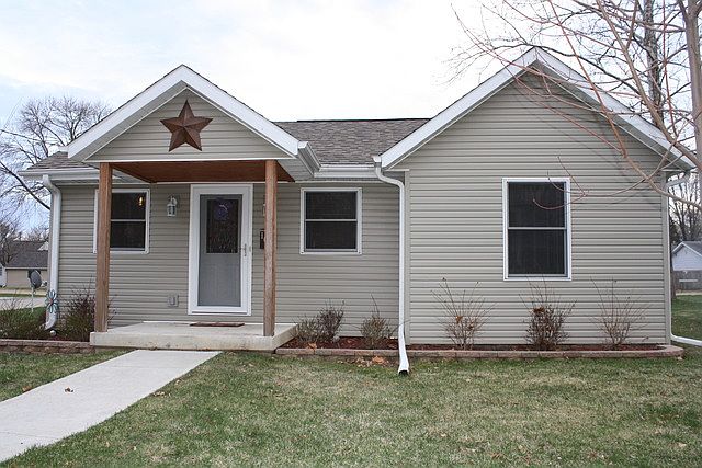 Adorable 2 bed 2 bath home on large corner lot. The open concept and vaulted ceiling in this home makes it feel much larger. This home is new from the inside out. New drywall, electrical, flooring, kitchen with maple cabinets and both bathrooms plus nice deck and patio in fenced backyard. Don''t forget the large detached garage with water and furnace plus loft storage.