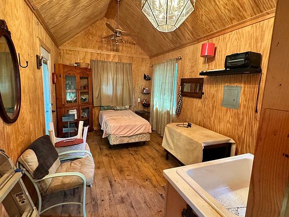 Quaint tiny-living cabin with screened porch and large storage shed with electricity on wire-mesh fenced .6 of a wooded acre. It has been used as a hurricane evacuation shelter in the past, but can serve as a get-away cottage with room for pets, a garden and to enjoy the outdoors. Near horse farms and event venues, Aiken State Park and just 11 miles to downtown Aiken.