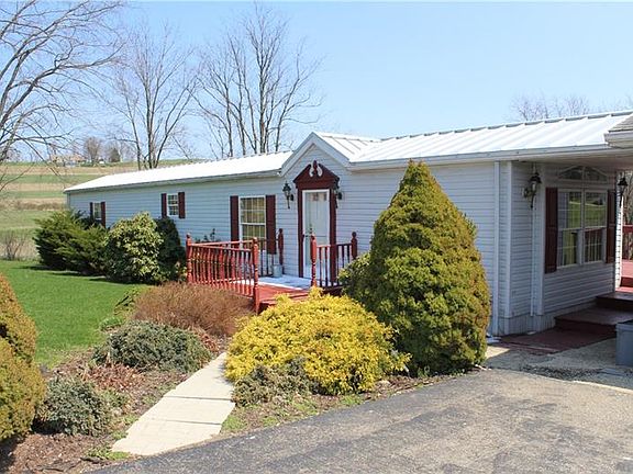 One level with 2 bedrooms 2 Full Baths and large garage with paved driveway and additional covered off street parking on 3/4 acre. 24x24 garage with 220 and back up generator connections. New roof and 10x24 deck out back overlooking neighboring pasture fields.