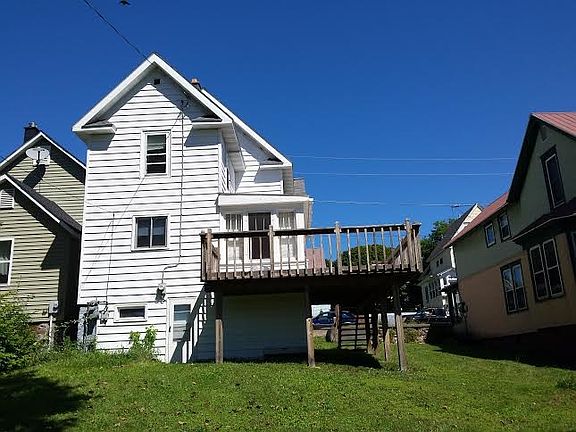 Super clean 2 bedroom home with an additional walk through bedroom. This house has brand new carpet in living, dining, and 2 of 3 bedrooms. New Trane furnace installed 2015. Bay windows in both living room and largest bedroom, stained glass also in picture window of living room, walk into the dining room and notice the built in cabinet and picture rail, kitchen is large with a comfortable sun porch off the side, the porch opens onto the deck for BBQs and friends. This house has high ceilings and is very airy. The back bedroom has a door to the roof of the porch, makes it easy for snow removal, or possibly converted into a little deck. There is a parking pad for off street parking, a nice flat back yard, and clean basement for laundry and lots of storage- door to backyard from basement allows one to easily hang laundry out doors in the summer. All appliances stay, except portable dish washing machine, also bureau in yellow bedroom stays.