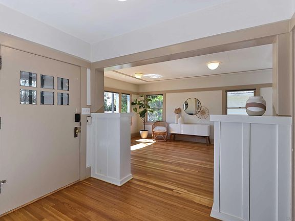 Single-story Craftsman-style bungalow exudes charm with its welcoming front porch. Distinctive period features such as hardwood floors, built-ins and wainscoting define spacious sun-filled living areas. Baths have been updated, and current floor plan could allow for possible reconfiguration with additional bedroom or office. Backyard includes garden area and pergola. Location affords lifestyle of convenience with restaurants, coffee shops and grocers within close proximity. Home is equipped with solar.