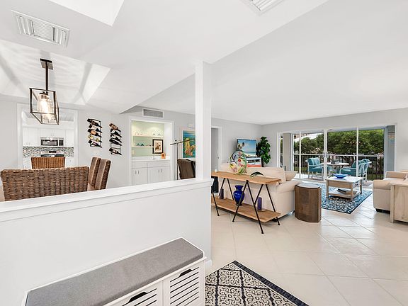 Experience refined coastal living in this fully remodeled and furnished two-bedroom, two-and-a-half-bath residence in a low-density building at Florentine Villas. Ideally situated on Marco Island's desirable south end, just a short stroll from the South Beach access point, this home offers western exposure for nightly sunset views from the expansive screened lanai. The lanai, upgraded with a new screen and enclosure, provides a generous outdoor living space complete with electric storm shutters for added peace of mind. Inside, the residence showcases diagonal tile flooring throughout, complemented by white plantation shutters. The kitchen features a shiplap tray ceiling with recessed lighting, white cabinetry, a mosaic tile backsplash, and high-end appliances, including a range, microwave, dishwasher, and a refrigerator with an icemaker. An adjacent dining area flows seamlessly into the living room, where glass sliders open to the lanai. A wet bar with shelving and cabinetry enhances the space, perfect for entertaining. The primary suite offers lanai access and includes a spacious walk-in closet. The en-suite bathroom is appointed with a dual-sink vanity featuring quartz countertops, a makeup counter, a tub, and a separate walk-in shower with floor-to-ceiling tile and a frameless glass enclosure. The guest bedroom also boasts a large walk-in closet and an en-suite bath with a shower-tub combination. A convenient powder bath is located off the hallway, and the laundry room includes shelving, a washer, and a dryer. Additional highlights include a new hot water tank (2023) and the potential for monthly rentals. The building has undergone significant updates, including a new roof in 2020, a pool renovation in 2021, and an elevator refurbishment in 2023. The seller will cover the current special assessments! With low-density living, under-cover assigned parking, and a storage room, this property offers a blend of luxury, convenience, and coastal charm.