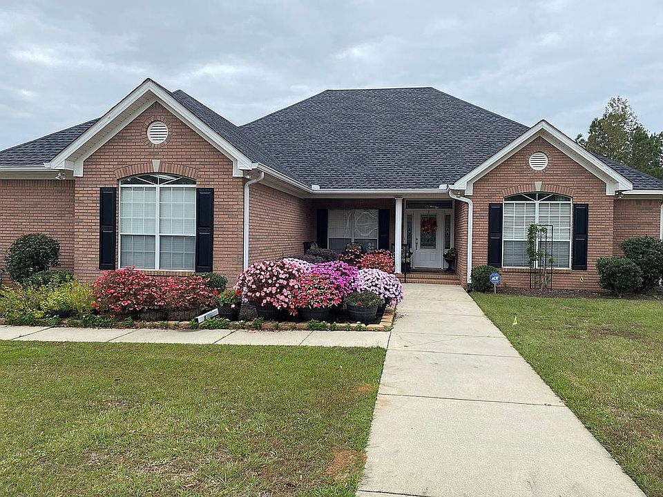 Located in the beautiful Lakewood Community brick home with 1.5 stories. Formal sitting & dining area, walk-in closets & pantry. Ceiling height of 9 ft or more beautiful molding, front entrance has gorgeous leaded glass, large foyer & double doors leading out into adjoining covered porch. Repainted in 2023, roof was replaced in 2020, multiple cooling systems with 10 year warranty less than 3 years old were installed in 2021, new electric water heater installed in 2021 & refrigerator less than 2 years old. Cozy brick fireplace with natural gas logs, wood flooring & ceramic tile, granite countertops throughout the home. Dual granite vanities in master suite, large soaking tub with separate tile shower. Home security system professionally installed with fire & smoke detectors. Wireless internet, 2 car garage, 2 large storage rooms inside the garage.