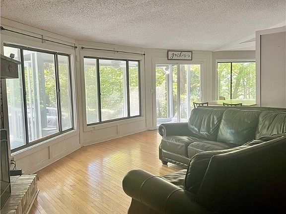 Step inside to discover gleaming hardwood floors through the main living areas and bedrooms. Both bathrooms were recently updated adding tile flooring, new fixtures, and full tile surround in the bathtub and shower combinations. The light colors, white cabinetry, masonry fireplace, and oak flooring combined with natural light leaves you with a very cozy feeling. Sliding glass doors open up to the screened in porch with new trex decking and steps. The landscape is partially fenced with a metal storage/workshop that is remaining with the home.