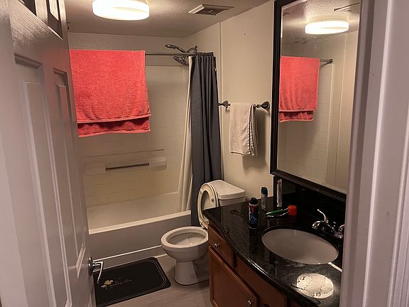 Private bedroom with own bathroom fully furnished with a queen sized bed and 4' x 3' dresser. Spacious mirrored closet, balcony with pool view as well as beautiful views of the grounds. Palm Trees everywhere you look, accented with gorgeous landscaping viewable from both balconies. Amenities include a gym, a pool, two spas, and a club house. The room for rent is in immaculate condition due to the fact that it has barely been stayed in at all. The bathroom is directly across the hallway from the bedroom and includes a full bathroom with a bathtub and a shower (we have a water softener too!). The room comes with this private bathroom. Washer and Dryer in unit. My bedroom is down the hall and it also contains a bathroom and shower for myself. I'm a 40 year old male. Quiet, respectful, responsible, clean, considerate, all in all I'm very easy to get along with. If you are interested in renting my place with me don't hesitate to reach out to me. Texting would be best. Thank you! First and last month's rent moves you in! The lease terms are negotiable but ideally I am looking for a lengthy agreement. Lease terms are negotiable but the longer the better for me.