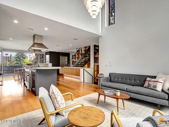 Urban, unique & exciting, situated on the south side of Delaney Park, this distinctive contemporary architectural home features a west-facing roof top deck with views of Cook Inlet, the Chugach Mtns & downtown skyline. Ultra modern in design & function, it was built w/steel & concrete. A commercial elevator goes to all 4 floors. Custom finishes include concrete bath & kitchen counters, walnut &maple cabinetry, cherry hardwood & concrete floors, cedar & weathered steel siding, architectural honed concrete block, commercial grade high end windows, and a custom "hidden" bifold garage door. Radiant in-floor heat imbues warmth with a forced air ancillary system. The heated driveway & sidewalks make quick work of Alaska's snowfall. The secured gate and commercial garage door offer security. The kitchen is at the center of the open living & dining areas and features a large center island and stainless modern appliances. Floor to ceiling windows on the south, west & north bring in natural light and the high vaulted ceilings give a sense of space and airiness. Spacious outdoor areas include multiple patios and two large decks with a large hot tub and a fully enclosed treed backyard oasis. The more than 1,200 square feet of decks offer fabulous views, privacy and sunshine. A bonus loft overlooking the main living area makes a perfect overflow guest space with a built-in Murphy bed when needed and otherwise serves as a cozy den or office area. The surprisingly private backyard welcomes and provides a unusual amount of green-scape in an urban setting. Only a few minutes away from the best downtown restaurants, breweries, museum, shopping and bike trails. Constructed using Corten steel and cedar siding, EPDM roof, commercial aluminum windows, this home was designed and fabricated for low maintenance, handicapped accessibility and total enjoyment. Come home to 1020 West 10th Avenue!
