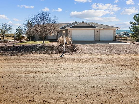 This stunning Pueblo West Acreage Rancher - 3 bedroom, 2 bathroom, 3 car garage with amazing mountain views! The split bedroom design, with a master bedroom featuring a master bathroom and a large walk-in closet, the additional 2 bedrooms and a full bathroom - all capturing the mountain views just from different angles. Spacious living room with gas log fireplace. Kitchen includes all new stainless steel appliances, main level laundry that includes washer and dryer. Off the dining area you have access to the large, covered patio to enjoy your mountain views. The unfinished basement gives you plenty of room to grow You are minutes from Lake Pueblo and with the acre fenced in can easily set up for horses plus have plenty of room to store your recreational toys and more! Schedule your showing today!