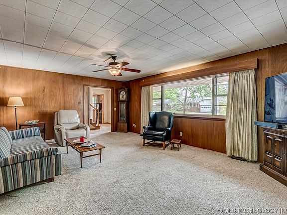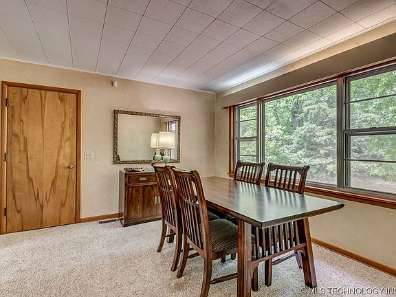 This mid century modern is everything you would expect from a 1959 build! With only 2 owners, this home has preserved its original character. It was designed by a New York architect, & the features are classic. Concrete piers are the foundation, w/ tension cables for stability. To the left of the entry, you will find a large den with a fireplace with a hidden bar. The large window frames the view of the front yard. Entering the dining room, you see the picturesque view of the backyard through the window. Continuing to the kitchen, the stainless steel appliances accentuate the original cabinetry. Plenty of counter space, & appliance garage, corner lazy susan, & room for a breakfast table, in addition to a pantry area. The pocket Pella door is to be noted. Where you see wood flooring, it is 3/4" oak in remarkable condition. The hall bath takes you back to a time where particular attention to detail was observed. Original to the home, the blue sink, tub, functional gas wall stove fit nicely with the vibe. Hot water tank new in December 2020. At the end of the hallway, you find a bedroom currently used as an office. It flows into the primary suite. There you will enjoy nature's best view, looking onto the back yard. The suite bathroom has a walk-in shower that is handicap accessible. The bedroom at the front of the home is also currently used as an office. The large window lets the light pour in. Built-ins make it the perfect workspace. A pocket door connects back to the entry. Ascending the stairs, you'll see two huge bedrooms & a bath make this area perfect for privacy. Large closets, as you might expect. The bath has a tub/shower combo. The utility room is on the lower level, off the dining area. It has a door to the backyard. The attic above the garage is decked, accommodating more boxes full of treasures. The backyard can be your oasis. Surrounded by trees, it just doesn't seem like you are in town. Just a few blocks/walking distance to campus!