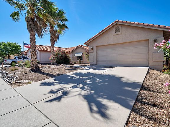 This Southwest-inspired residence combines the warmth of the Mediterranean aesthetic with the unique elements of the desert landscape. It showcases stucco walls, a clay tile roof, & charming architectural details. As you step inside, you are greeted by tile flooring throughout the home, providing durability & a cool respite from the desert heat. The well-appointed kitchen features stainless steel appliances, including a double oven, perfect for preparing meals for family & friends. The granite countertops provide both functionality and aesthetic appeal, while the newer white cabinets offer ample storage space for all your kitchen essentials. The breakfast nook, conveniently located near the kitchen, leads out to a screened patio. Plz expand for more description... The screened patio provides a serene spot for enjoying morning coffee or casual meals while taking in the views of the surrounding landscape. With Fresh interior paint it's a blend of elegant design, comfortable living spaces, & thoughtful features. From the tiled corner fireplace in the living room and a comfortable den which can be a 3rd bedroom. Stainless steel appliances, granite countertops, double oven, newer white cabinets, breakfast nook leading to the screened patio, 2-car garage with storage cabinets, tiled master shower, dual vanity in the master bath, and low care paver backyard, this home provides a harmonious balance of style, functionality, and desert-inspired living.
