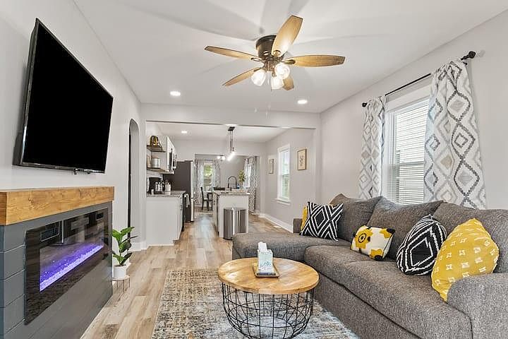Charming Bungalow 2-bed, 1-bath with brand-new HVAC system for year-round comfort with smart control, total remodel with LVP flooring throughout, and a delightful kitchen featuring gleaming white shaker-style cabinets, luxurious granite countertops, and top-of-the-line stainless steel appliances. Conveniently near Iroquois, Bellevue and Cliff Parks. Don't forget the fenced back yard and detached 2-car garage w/ additional parking on a private alley. Investors, this property currently has been a successful Mid-term rental bringing minimum $2500 a month.