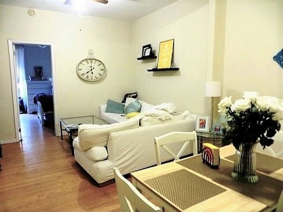 Extremely large 2 bedroom/1 bathroom apartment. Unit features a separate, renovated ktichen and an oversized living room with a separate dining area. The bedrooms are on opposite sides and both easily accommodate queen sized beds. Front bedroom features a bonus den/walk in closet. Hardwood floors and high ceilings throughout. Laundry in the building. Great uptown location, only steps to the bus to NYC and minutes to Trader Joes, all shops and restaurants, easy walk to uptown ferry.