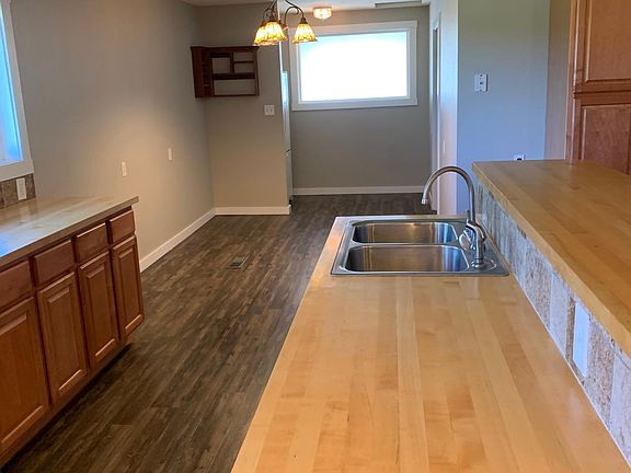 Sportsman's paradise, close to town! Fish in the creek or down the road at the many ponds. Duck hunt from the property or enjoy the many deer and rabbits that call this area home. Nice home with gorgeous front porch as you enter, then walk into a huge living room with vaulted ceilings, exposed beams and skylights. Next is the huge kitchen with new appliances, two sinks and ample cabinets. Dining room is attached. Home also includes a huge master bedroom with attached bath. A massive 800sf bonus room includes a pool table and dart board for your entertainment. A beautiful backyard buffers the wind with several large rows of evergreens. Yard is fenced. The property is shared as across the driveway is a large shop and apartment with other friendly tenants. Home would be great for a family or a couple who loves to entertain. Shop on property not included.