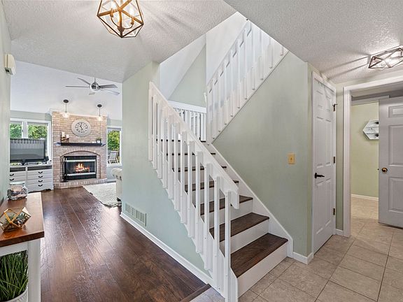 Check out this updated Millstone Village Two Story with 3 bedrooms, master on the main level with a walk in closet and huge bathroom! Additional room upstairs can be a den or an office. Beautiful light and bright home with a cozy fireplace, vaulted ceilings, and open concept layout. Laundry room on main level, beautiful flooring throughout the downstairs and on stairs, installed in 2020, freshly cleaned carpet. Painted trim and kitchen cabinets in 2020. New light fixtures throughout. Tear off roof in 2014. Floored attic. Appliances remain but not warranted. Close to restaurants, quiet neighborhood, perfectly located on a cul de sac, great trails and parks in the neighborhood, connects to the Pufferbelly trail. About 15 minutes from downtown and many nearby restaurants.