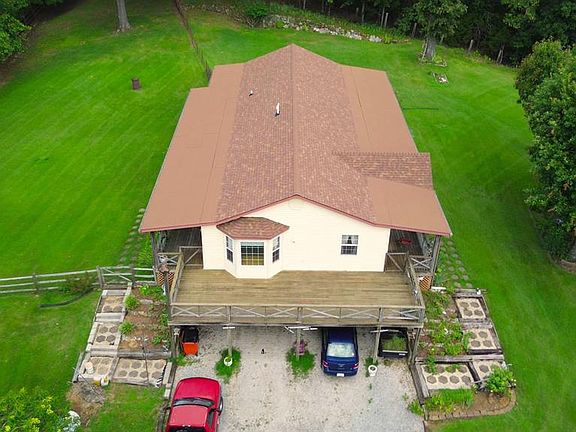 Escape to your private sanctuary at 1020 Yates Chapel Rd in Cecilia, KY. This rare 45.3-acre property features abundant wildlife, marketable timber, breathtaking views, and multiple outbuildings including an 840 sq ft storage shed. The custom 2,610 sq ft home offers 3 bedrooms, 2.5 baths, an open floor plan with vaulted ceilings, exposed beams, and a gas fireplace. The primary suite includes a double vanity, walk-in shower, and jetted tub. Enjoy stunning scenery from the three-sided porch. A heated/cooled workshop with water access and a finished basement with entertainment space and garage access add versatility. Meticulously maintained with one owner and interior insulation throughout, this retreat sits just 13 miles from Elizabethtown—offering seclusion with convenience.