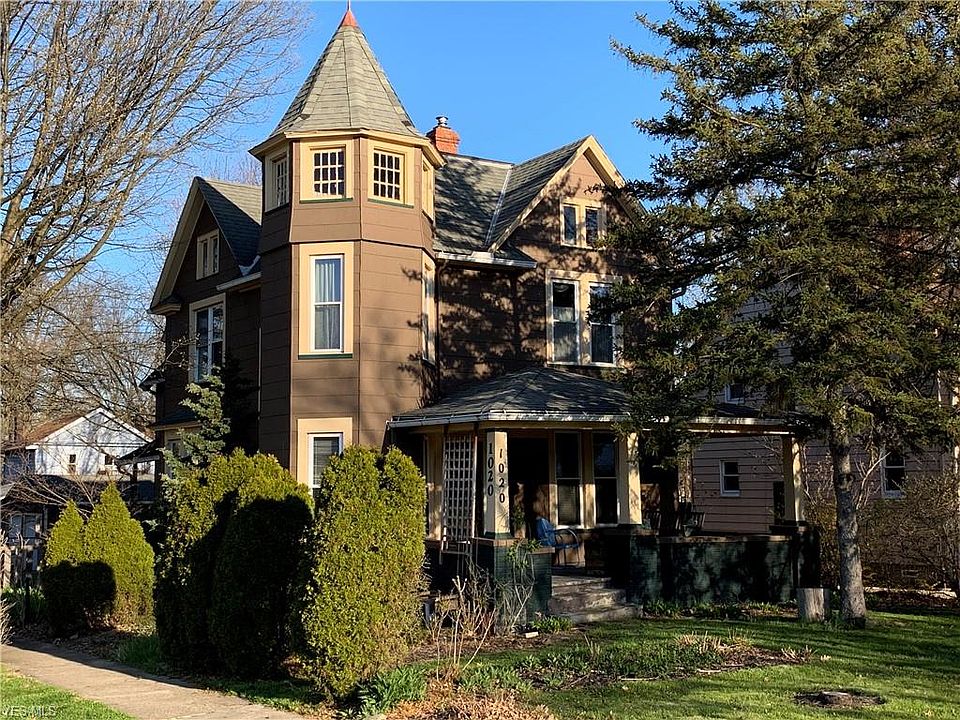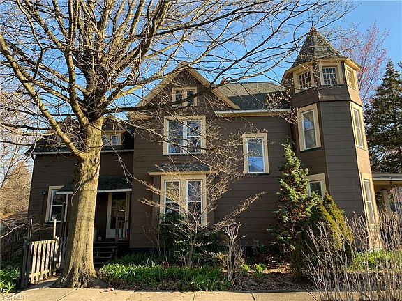 Historic Front Porch Victorian. Three bedroom bath and a half with exquisite original details, crown molding, archways, leaded glass accent windows, narrow and 12" wide plank flooring. Triple glazed replacement windows. Ergonomically designed kitchen 2016 with hardwood floors, updated electrical and plumbing, maple cabinetry, Corian countertops, LED lighting, subway tiled backsplashes, appliances and great storage. Updated half bath with bead board wainscoting and marble vanity top. Newer energy efficient furnace installed 2002. Whole house with blown in insulation. Master Bedroom with adjoining sun / sitting room. Conveniently located, spacious 2nd level laundry. Lovely yard with Concord grape vines, blackberry bushes, blueberry bushes, Queen Ann cherry tree (yellow cherries). Butterfly and hummingbird habitat. 2 car detached garage. To be Cleveland Heights point of sale compliant. Wonderful home at a great price.
