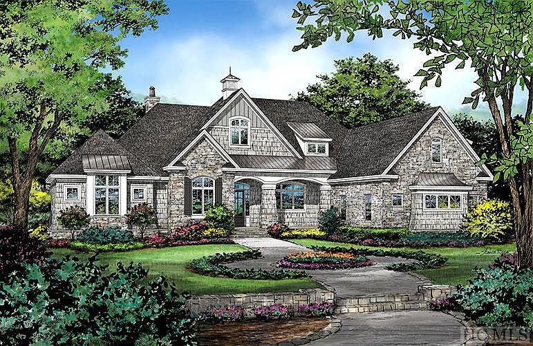 This premier 2.01 acre home site in Stonefly is the perfect setting for the Bridgeview, a luxury design on a hillside walkout. Arches and a cupola highlight the exterior, along with a metal accent roof. The open kitchen design faces the great room and dining and makes the entire space perfect for entertaining family and friends. A nearby walk-in pantry offers loads of extra storage and the pocket office can be used for a workspace of for added food preparation. A sitting room accompanies the elegant master suite with large adjoining bath.. The oversized utility room with laundry sink and built-in cabinetry is large enough to serve as a hobby room and has access to the side porch. The lower level contains two bedrooms, each with private bath, a media/game room, and multi-purpose room or workshop. The rear balcony and lower porch overlooks 476' of the Wild and Scenic Chattooga River and the landmark, English inspired, arch stone bridge in Stonefly. The possibilities for extensive landscaping and terracing on this homesite are endless. Picture the evenings spend listening to the rushing water of the River while relaxing in front of the fireplace on your screened porch. Stonefly has an optional amenity package available for residents with fitness center, golf, tennis, swimming pools and boating. This homesite is surrounded by the Natahalla National Forest with many hiking trails to Whiteside Mountain and Silver Slip Falls. Stonefly is a fly fishing paradise and located only 1.2 miles from Cashiers and 9.0 miles to Highlands NC. Come out to Stonefly and look around, a new model home is currently available to inspect for the quality of construction and extra options that are available for your new home. You will not need to hire an architect, builder, or interior decorator we will handle all of the details. A new home built to today's energy efficient specifications is more economical to heat and cool for great saving.