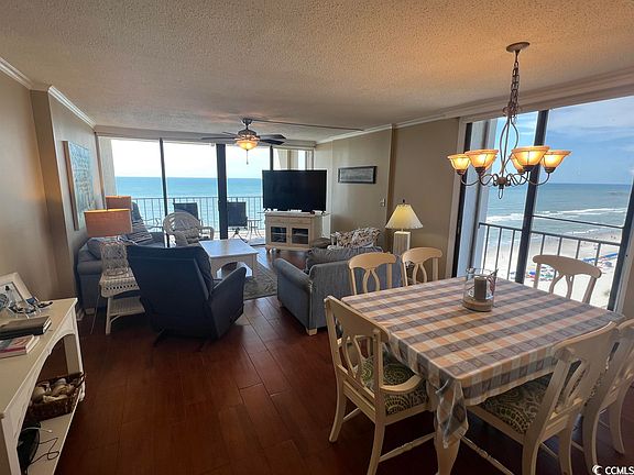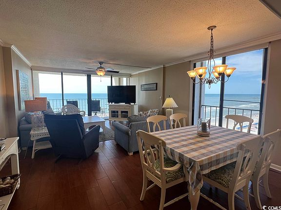Hidden in the quiet and exclusive Arcadian Shores Community, Discover Arcadian One, Myrtle Beach’s Best Kept secret Fully furnished3 bedroom condo in highly sought after Arcadian One Building. Don't miss your chance to own a little slice of paradise. Great for a fulltime residence, second home or even an investment opportunity. Some of the lowest HOA fees on the Myrtle Beach Coast. OnsiteRental Management and Onsite HOA office and Maintenance staff. This 3 bedroom unit features an unobstructed Ocean front balcony, Juliet balcony off the dining room and guest bedroom and private master bedroom balcony for a full 180 view! All balconies recently had waterproof deck coating applied. This oceanfront condo features 3 bedrooms and 2 bathrooms. Located right on the ocean, it provides breathtaking views and easy access to the beach. Corner unit. The open-concept layout creates a seamless flow between the living and dining room. Large glass doors allow abundant natural light to fill the space and provide amazing views of the ocean.