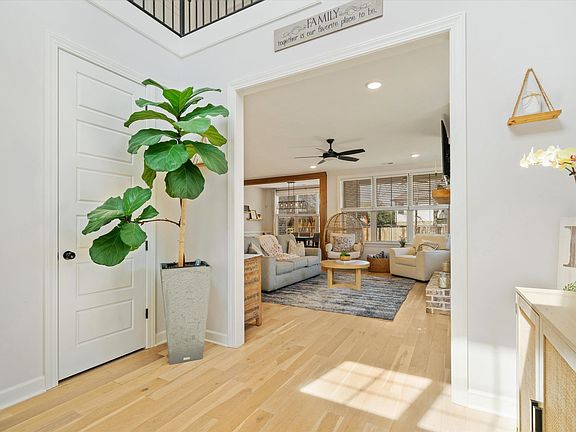 Beautiful 4BD/3BTH Lakeland home in a tranquil cove, just 4 years old. Boasting an airy open plan with two story entry, hardwood floors and 10' ceilings. Enjoy a gourmet kitchen with quartz countertops, professional gas range, and breakfast nook. Primary suite on main with luxury bath. Additional bedroom on main. Two bedrooms up with shared bath and expandable area. Outside is a spacious fenced yard with covered patio and fire pit area under a pergola. One of the neighborhood's largest lots.