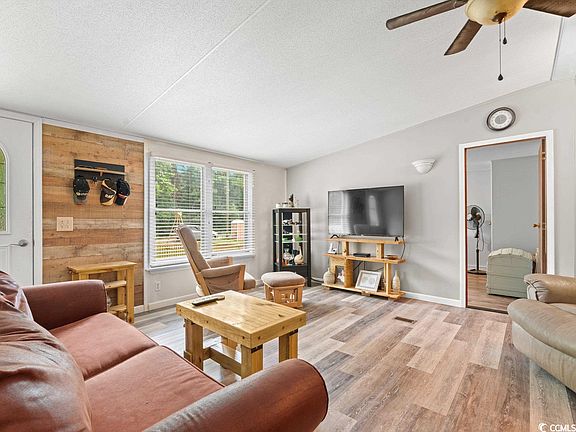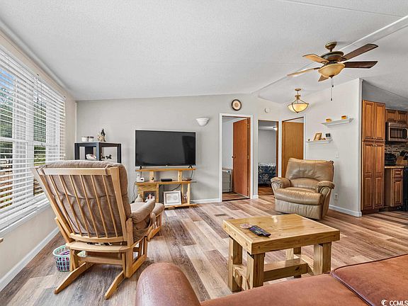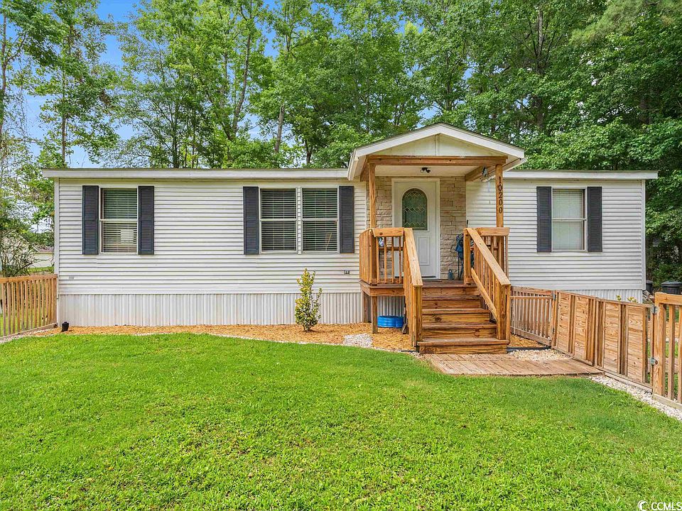 NO HOA! Beautiful manufactured home on ½ acre lot ready to make your own! Gorgeous 3BR/2BA home was renovated in 2019 prior to current owners. New Roof August 2022. The kitchen features granite counter tops, stainless steel appliances, custom cabinetry, spacious breakfast bar with lots of storage space. Owner’s suite has a large closet, with on-suite with custom tile work with granite accents surrounding the bath tub, tile floors. This is a split floor plan. Guest bathroom has a custom tiled shower with granite accents, tile floors, a trendy vanity with granite counter top, a trendy new mirror and light fixtures. Fenced in front yard. Large rear deck is perfect for relaxing or entertainment and perfect view of the pond. Approximately 7 miles from the ocean where you can enjoy the beach, fishing. Conveniently located to nearby shopping, restaurants, golf, entertainment and to all Myrtle Beach has to offer. Schedule your visit today! All measurements and square footage are approximate and not guaranteed. The buyer is responsible for verification.