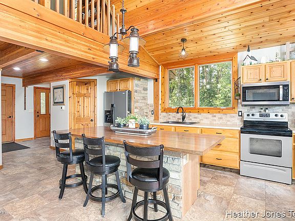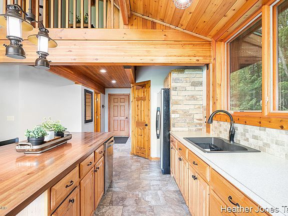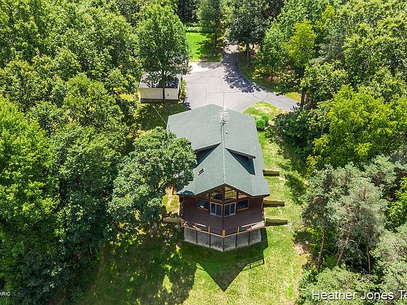 Hansen Trail starts on a private driveway winding through the pines to a one-of-a-kind home nestled into a serene oasis. All situated on Wabasis creek. Made for entertaining, the open-concept kitchen, dining and living space is flooded with natural light. You will love the vaulted 18ft ceilings, floor-to ceiling windows, and stone fireplace. The main floor is finished off with a bedroom and full bathroom. Upstairs you will find a private master suite and loft space. The walkout lower level, offers a large living space, bedroom, full bathroom, and laundry room. With many improvements, added skylights, geothermal heating, and recent mechanical updates this home truly has it all- located between Greenville and Rockford! Offered with a second parcel- 18 acres total! Don't miss this one!