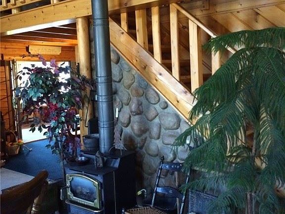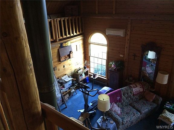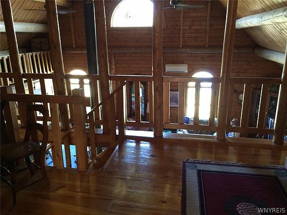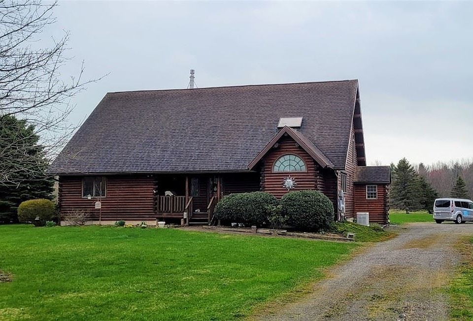 Custom Log Cabin Cape on 3.5 acres w 1st floor master w/master bath, LR w/ gas FP, Fla Room, 1st floor laundry. 2 bedrooms w/ jack & Jill bath + loft on 2nd floor. 2 story log cabin ,detached garage & Finished walk out basement w/ 1/2 bath & kitchen area, could be in-law setup.