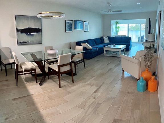 Enjoy stunning picturesque and sunsets overlooking the Inter-coastal and Gulf as you sip your favorite beverage. Your back patio is your private getaway for breathtaking views and your yard affords you the opportunity to try your hand at fishing off the rear seawall, or, sit on the patio and watch the dolphins swim by at morning and sunset. This haven has never been impacted by Florida storms and has an Elevation grade of more than 8 feet. This bright and contemporary 1400 square foot condominium is nestled in the heart of the prestigious resort style living community of Imperial Point. Imperial Point features loads of included amenities, including 2 pools, a fitness center, community dock & boat launch, 2 clubhouses, pickle ball/bocci court, shuffleboard, library, ping pong and more! Conveniently located just minutes from the beach, this move-in ready gem is just waiting for the right buyer! Your new home includes a very spacious updated chefs kitchen with ample wooden cabinets and granite countertops. It hosts a breakfast bar area and a neighboring dining area for entertaining guests and everyday living. Both bedrooms are spacious with the master suite hosting a large walk-in closet and a walk in shower. The guest bedroom is large with a deep closet spanning the width of the room. Your everyday living is complete with a large living\dining area with ample lighting and ‘all day” panoramic views of the inter coastal. This condo boasts an open floor plan with PRIVATE INDOOR LAUNDRY and plenty of updates including: 1. New tile floors throughout; 2. New A\C and Hot Water header installed in 2025; 3. Panoramic Hurricane Sliding Doors and Window; 4. Updated electric overhead lighting; 5. Hardwood doors throughout This home includes furnishings and you can move right in without the hassle of renovation or redecorating.