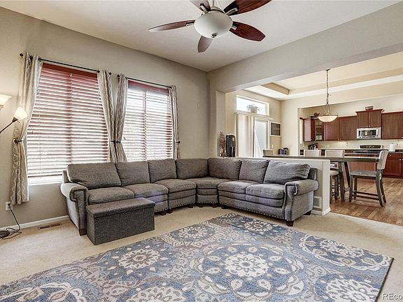 Working from home? Home schooling? This beautiful Reunion home offers 4 bedrooms and 3.5 bath with more than enough space for all family members. The large kitchen has plenty of counter space with tons of cabinets and center island that opens up to the dining room and family room. Upstairs has two bedrooms plus a master and an additional loft/flex space to make into a home office, sitting room, or additional play room for the kids. The gorgeous master bedroom has plenty of space, a gas fireplace, 5 piece master bath and giant walk-in closet. Down in the finished basement you find a large rec room big enough for all the fun toys, large bathroom and massive fourth bedroom. Reunion has great amenities including the "Red Barn" rec center just north of 104th with a community coffee house, ponds and trails. Hop over to one of two pools and many playgrounds with the other kids on the block after a quick trip to one of the nearby grocery stores, or sit in the backyard while you soak up the beautiful Rocky Mountain sunsets. Such a great house and neighborhood for your family to call home!