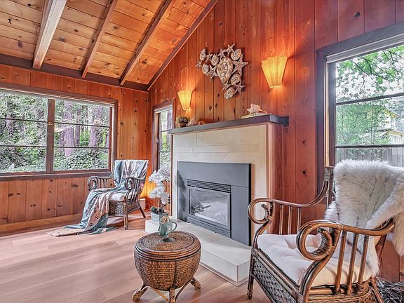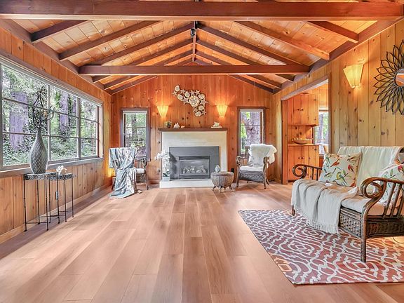 Discover this magical single level home, hidden behind mature landscaping on nearly ½ acre of level land that's both kissed by the sun & shaded by a fairy ring of redwoods. The owners have loved this property for decades. Remodeled kitchen & spacious primary bedroom-complete with en suite jacuzzi style bath + foundation & permits! The Riverside bedroom offers a relaxing window seat that converts to a queen size bed: guests can fall asleep to the serene sounds of the river far below. Creature comforts: newer Generac auto-on generator, A/C, and new luxury vinyl floors! Imagine relaxing on the spacious deck overlooking the river... Driveway @ left of the garage goes right up to the house! New septic tank is near the pavers in the front yard. Located at the far edge of a desirable neighborhood, between 3 state parks & less than 1/2 hour to Santa Cruz's legendary beaches & university. Two +/- 45 minute commute routes to Silicon Valley, or work from home: high speed Comcast.