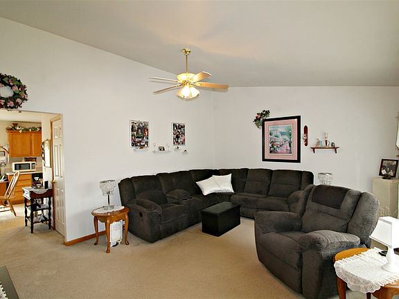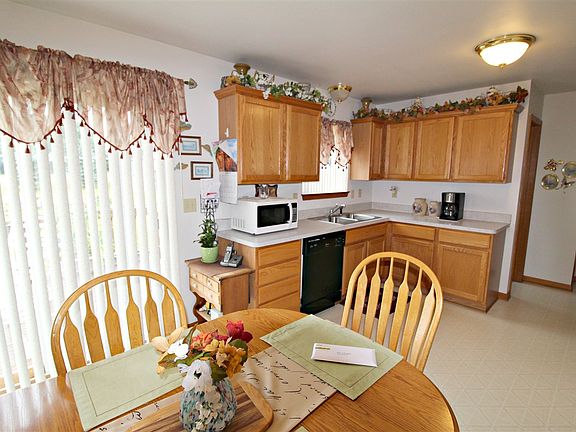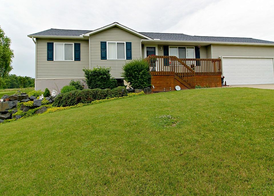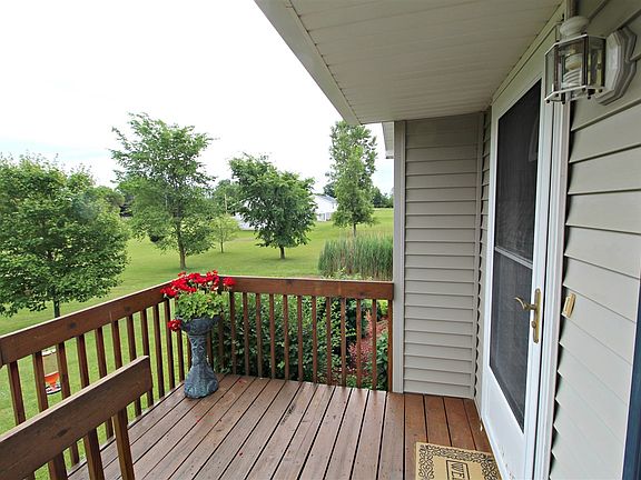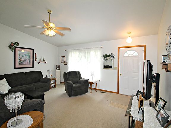 Serene setting with beautiful landscape, paver patio, deck and covered front porch. Day window walkout lower level plumbed for bathroom. Newer roof (2004) and well tank/switch (2018) Immaculate. Oak kitchen with appliances included. Great room with cathedral ceilings. Exclude: Great room curtains.