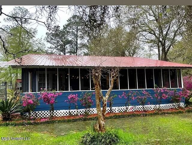 FISHING CAMP on almost one acre on the corner of Johns Bayou Rd and Bass Rd. Mini split installed in 2023. There is also a detached outbuilding that could be used for a workshop, etc... Also, an enclosed bonus room with its own entrance on the back of the house that can be used for an office, craft room or even put a bed in it for overnight guests. Sit back on the large screened in front porch and enjoy your coffee and listen to the birds. There is also a large room in the back of the house that can be used as a den/sunroom that has many windows. This property has many large live oak trees, some over 100 years old. Many blooming plants surround the property, three large Bradford Pear trees, azaleas, caladiums, etc... that are absolutely gorgeous in the spring. Bricked back patio to sit back and relax or have a barbeque with family. There are three driveways with gates and plenty of parking for family. Johns Bayou marina is just a step away to launch your boat and go fishing! Bring your family and friends and enjoy the Vancleave Mardi Gras parade that goes right in front of the house! There is a fenced in area for chickens to be raised and a chicken pen/house. The entire property is completely fenced in heavy gage wire trimmed in wood. You will feel completely at home right away at this home.