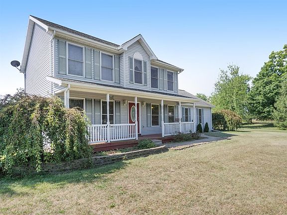 Great colonial with over 2400 sq ft living space on 1.24 acres with pole barn in a quiet country setting! A covered porch runs the length of the house and welcomes you into the 2-story foyer with tile floor and opens to a formal living/office/den and a formal dining room. The kitchen has lots of oak cabinets, snack bar, stainless steel appliances, wood laminate floors and a breakfast nook that is off a large family room with gas fireplace and has a door to spacious deck for entertaining. A half bath and an attached 2.5 car garage complete the entry level. Upstairs is a nice master bedroom and master bathroom with dual vanity and tub/shower combo, and a walk-in closet. Two additional large bedrooms and another full bath complete the upper level. A 4th bedroom with egress window is in the finished basement where there is also a huge rec room, family room and possible 5th bedroom with egress window, and utility room with laundry. Outside is a pole barn for storage, workshop, car enthusiast, or hobbyist. All this on a corner lot with easy commute to Ann Arbor or Jackson. High speed internet available!