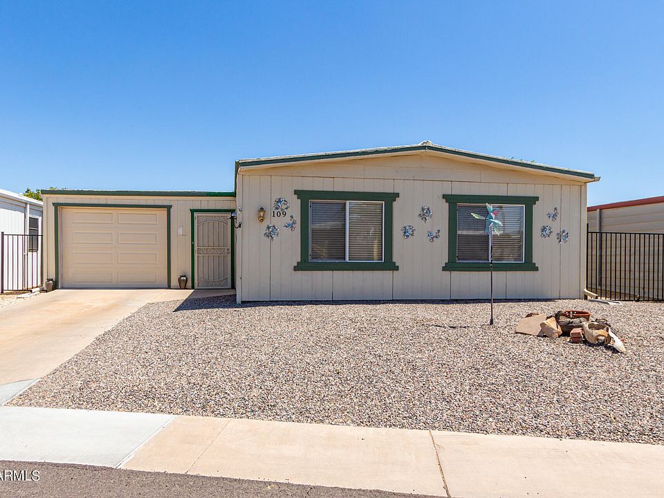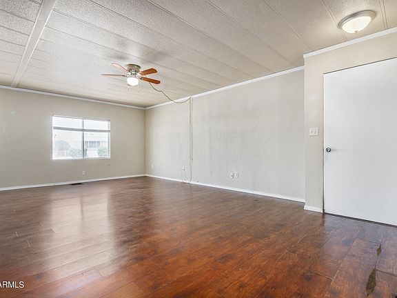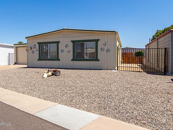 Welcome to this charming 55+ Community in Peoria! This move-in ready home features a spacious family room with wood flooring and neutral colors throughout. The updated kitchen is stylish w/tile backsplash, wood cabinetry, and built-in appliances. The primary bedroom offers a generously-sized closet and an ensuite bathroom for added convenience. The secondary bedroom includes a built-in Murphy bed, serving as a versatile desk area. Additionally, a workshop/hobby room with AC adds to the functionality of this home. Step outside to a cozy and private backyard, perfect for alfresco dining, morning coffee, or simply unwinding after a long day. Convenient to shopping, restaurants, and with easy freeway access. Don't miss out on this opportunity! Being Sold ''AS IS''