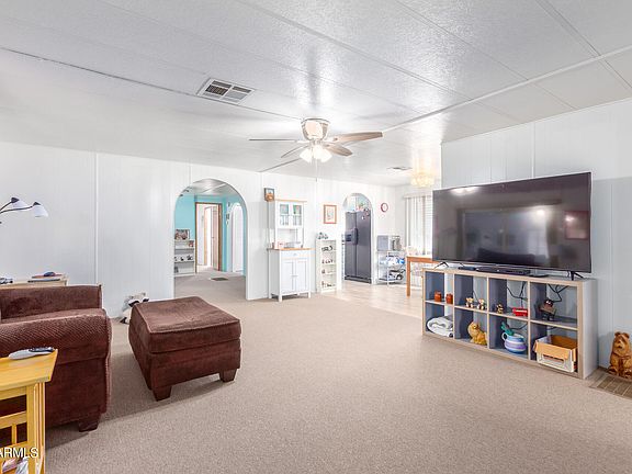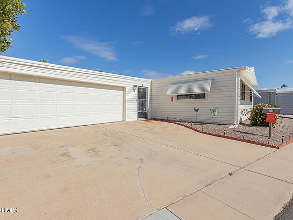 Fantastic opportunity to own this charming 3 bed, 2 bath mobile home in the 55+ community of SC Townhomes in Peoria! Great location, paved roads to property, and easy freeway access. Inside, you'll come across with perfectly-sized living areas featuring neutral tile flooring, designer palette, plush carpet in all the right places, and arched doorways. The gleaming kitchen showcases white cabinetry, wall oven, a pass-through window, and plenty of counter space to cover all your cooking needs. Discover the primary bedroom offering large double closets and a private bathroom. Spend relaxing afternoons during sunny days in the lovely backyard including a cozy sitting area and beautiful shade trees! You don't want to miss this value!