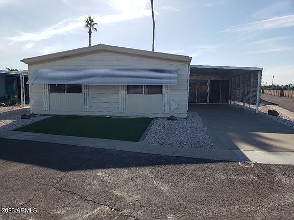 Take a look at this spacious 3 bedroom split floor plan manufactured home. Water lines, ac, flooring, toilets, painting inside and out just done November and December 2023. Unit is ground set for easy access. Enjoy the outdoors in beautiful arizona room, even a small fenced area for your fur baby. More photos coming soon.